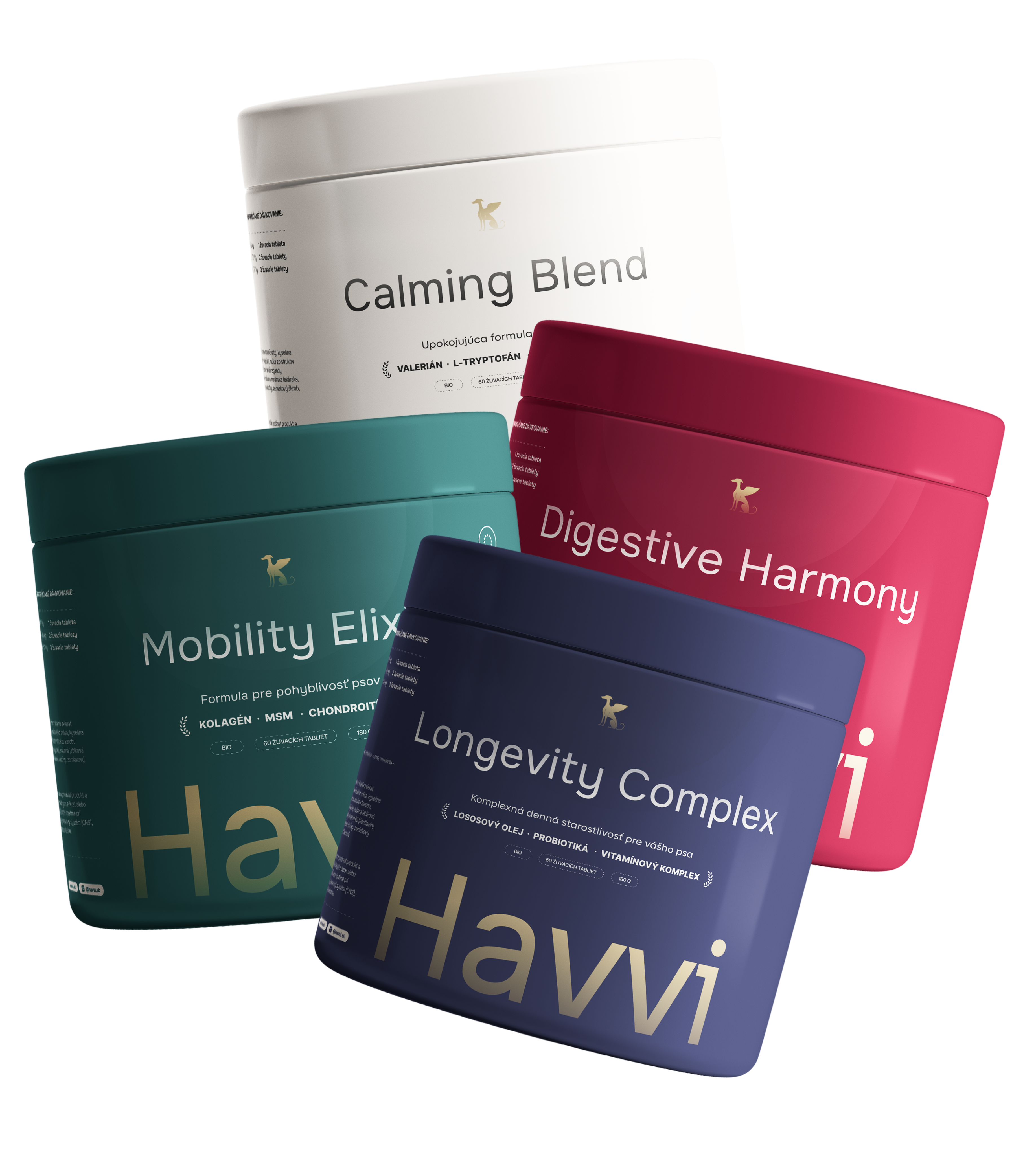 Každý produkt je vyrobený z najkvalitnejších, vedecky overených zložiek. Nevyužívame žiadne zbytočné výplne – iba to, čo je pre psa skutočne prospešné. Naša filozofia sa odráža aj v dizajne našich obalov: minimalistické, funkčné a čisté – presne tak, ako aj náš prístup k starostlivosti o psov.
