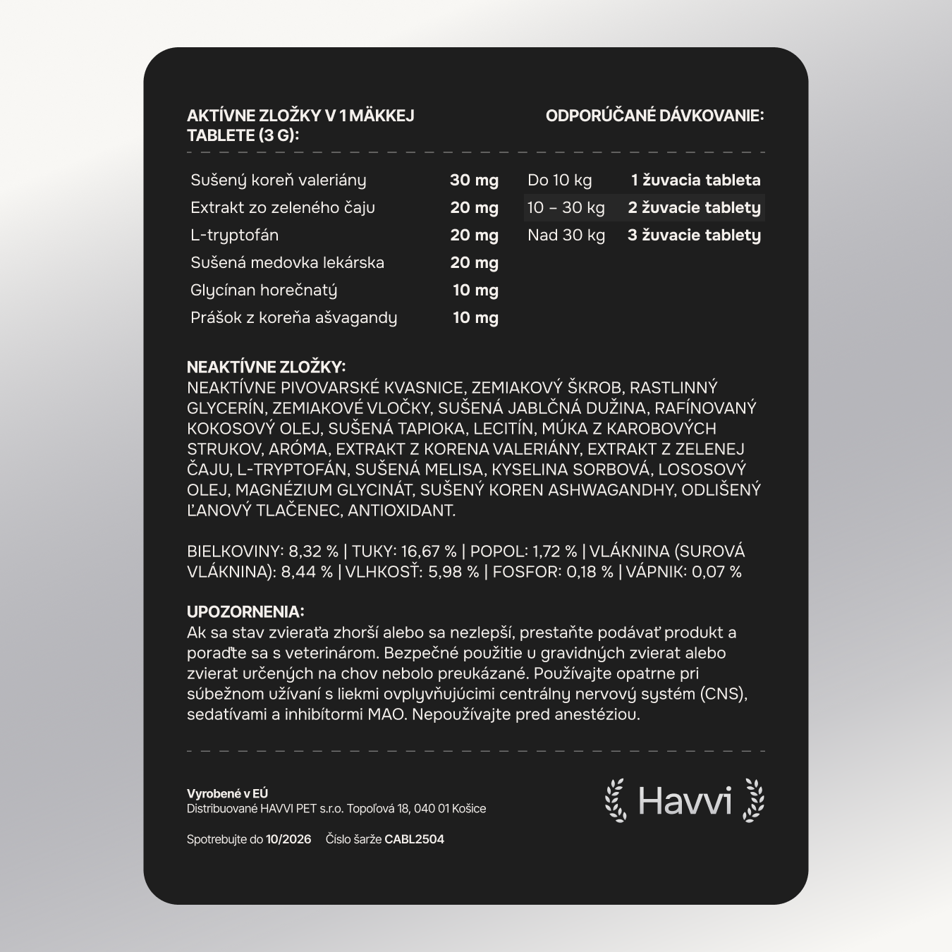 Bežné mäkké pamlsky bývajú postavené na škrobových bázach a dlhých zoznamoch „neaktívnych“ zložiek – gumy, oleje, sladidlá, arómy a farbivá. Výsledok: tvar a chuť, nie kvalita. Havvi používa krátke, zmysluplné zloženia bez plnidiel a bez syntetických farbív či príchutí. Pre každodenné podávanie a čisté zloženie, ktoré si viete prečítať